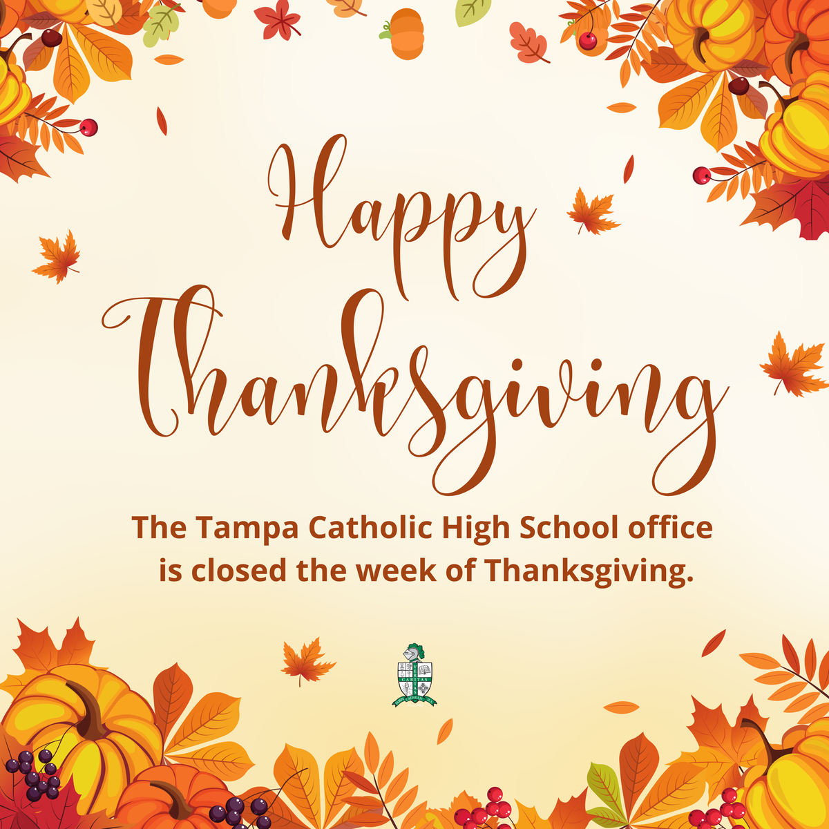 The Tampa Catholic Office will be closed for Thanksgiving week.